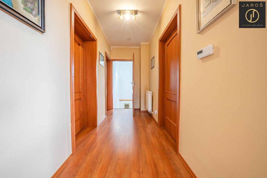 V přízemí se nachází samostatná bytová jednotka s kuchyní, koupelnou, toaletou a dalším pokojem – vhodná jako zázemí pro hosty, kancelář či menší provozovnu. V patře najdete koupelnu, toaletu, dva samostatné pokoje, jeden průchozí pokoj, prostorný obývací pokoj s lodžií a kuchyň s přímým vstupem na zahradu.
