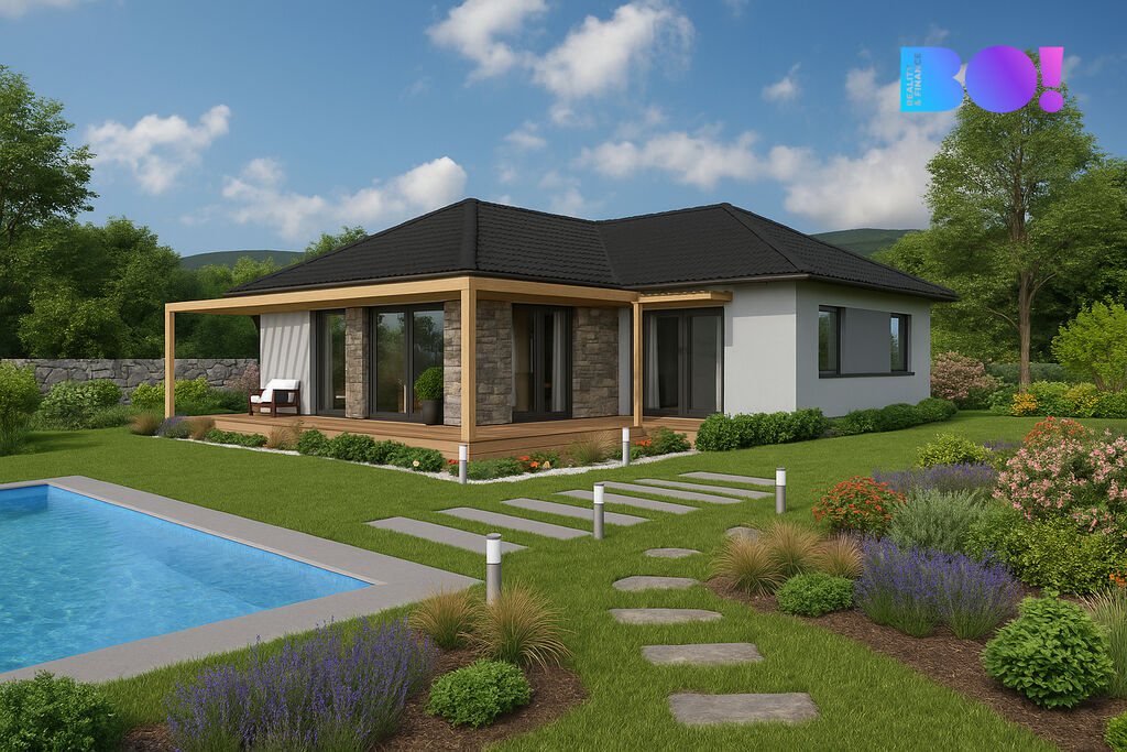 Bungalov nabízí komfortní bydlení v harmonii s přírodou.