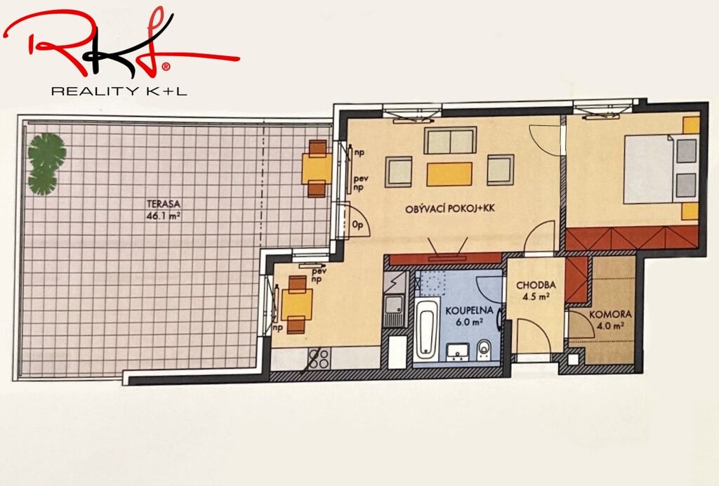 Nabízíme Vám byt o dispozici 2+kk, který se nachází v 1. patře bytového domu, Kryšpínova, Praha 10. Výměra bytu činí 61 m² + terasa 46,1 m².