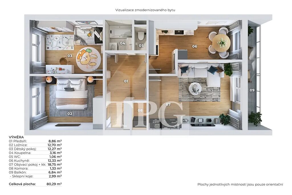 Byt je v družstevním vlastnictví a nesplacená anuita bude činit 2.052.000,-Kč . Splátky anuity jsou měsíčně vyčísleny na 7.866,-Kč. Nastěhování možné od 1.12.2025