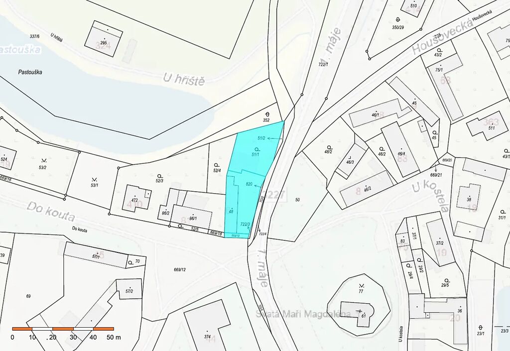 Pozemek o rozloze 900 m² se nachází na kraji obce – z jedné strany sousedí pouze s jedním domem, z druhé strany je oddělen zděným plotem od silnice.