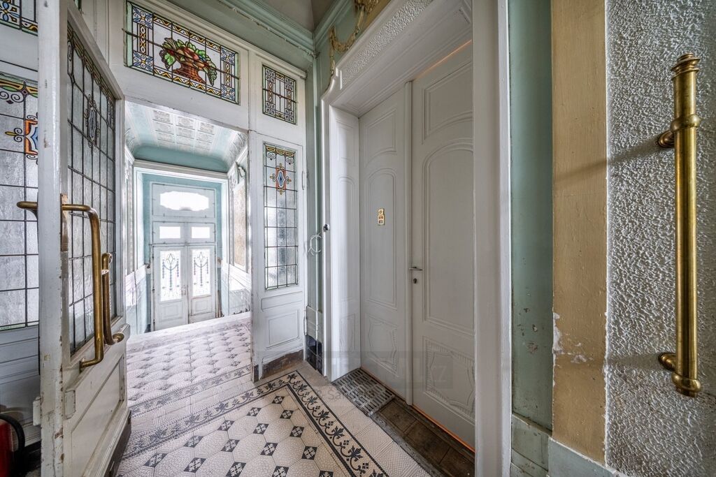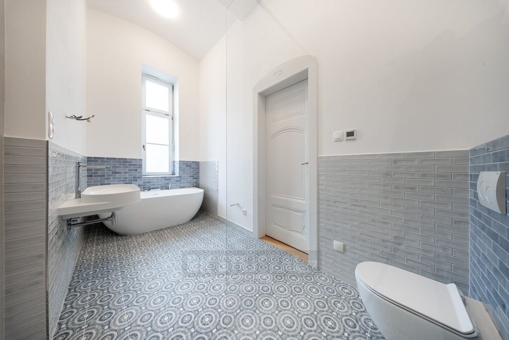 prostorná vstupní hala, středová chodba s otevřeným šatním prostorem, velká hlavní obytná místnost s plně vybavenou kuchyňskou stěnou, s jídelním prostorem a obývací částí, samostatná ložnice se vstupem ze vstupní haly a průchozí do hlavní obytné místnosti, samostatné WC s umyvadlem a oknem do světlíku, prostorná koupelna s vanou, s umyvadlem, se sprchovým koutem a oknem do nádvoří za domem, samostatná ložnice s okny do nádvoří za domem, k bytu náleží možnost užívání přístřešku na kola na nádvoří ve vnitrobloku za domem a všech společných prostor v domě.