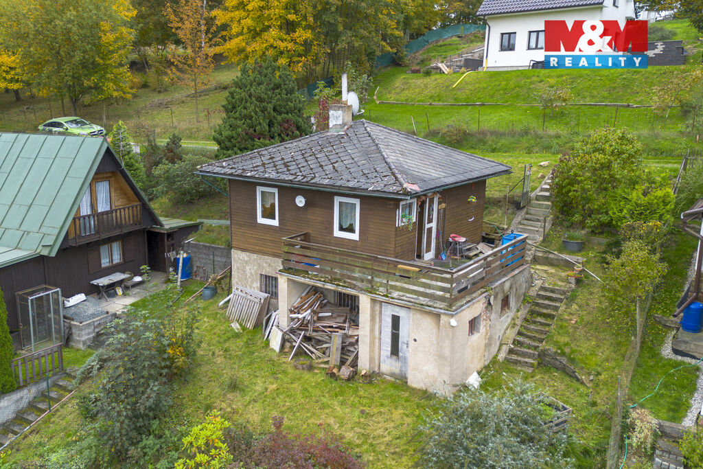 Chata je postavena ze smíšené konstrukce, stojí na pozemku o rozloze 383 m² a nabízí užitnou plochu 32 m².