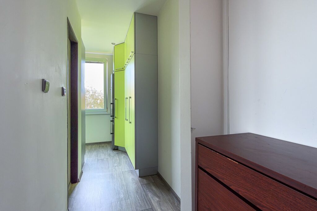 Byt je situován ve 4. patře udržovaného domu a je v osobním vlastnictví. Prošel rekonstrukcí, která sice proběhla před delší dobou, ale byt je čistý, funkční a připravený k okamžitému bydlení. Dispozice je praktická – kuchyň, obývací pokoj a ložnice. Koupelna s toaletou je společná.