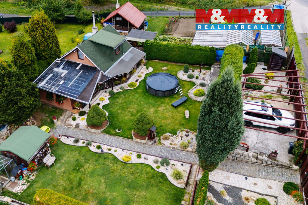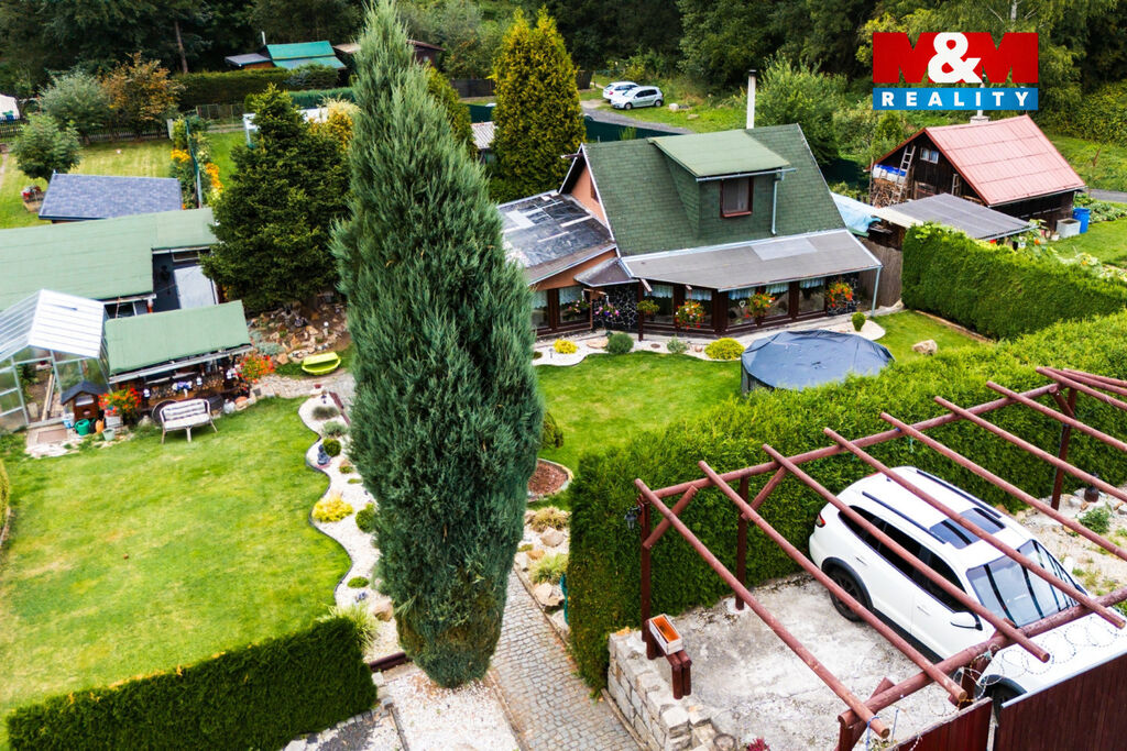 Nabízíme k prodeji krásnou chatu s možností trvalého bydlení o užitné ploše 95 m² v Karlových Varech – Staré Roli. Nemovitost je plně vybavená a připravena k okamžitému užívání. V obývacím pokoji se nachází prosklený krb, vytápění zajišťuje tepelné čerpadlo a elektrický kotel, ohřev vody bojlerem. K dispozici je vlastní velkokapacitní studna i veřejný sezónní vodovod, což zaručuje komfort celoročního provozu. Na udržované okrasné zahradě se nachází letní bazén a dvě parkovací stání na vlastním pozemku. Klidná lokalita Staré Role nabízí výbornou dostupnost do centra Karlových Varů i do okolní přírody. Ideální volba pro ty, kteří hledají kombinaci klidu, pohodlí a městské dostupnosti.