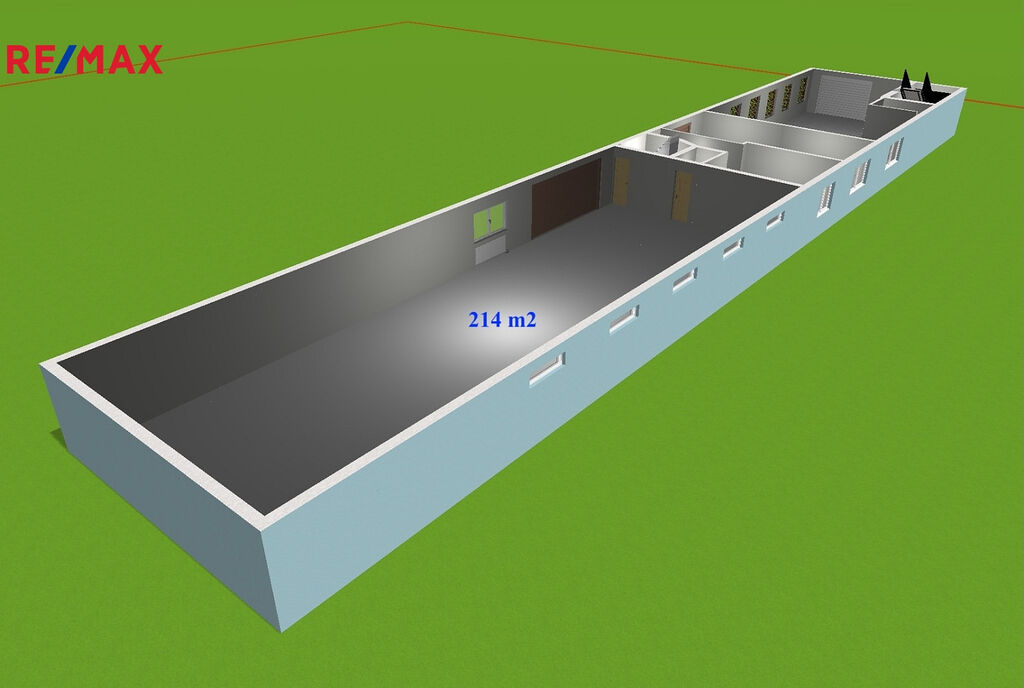 Součástí pronájmu jsou skladovací prostory v "garáži" o výměře 214 m² a manipulační plocha v uzavřeném dvoře, výměra 1000 m².