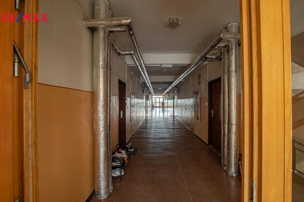Dům – zateplení, eurookna, 4 výtahy (jeden nákladní), moderní čipový vstup a kamerový systém. Čistý a bezpečný dům udržuje úklidová firma.