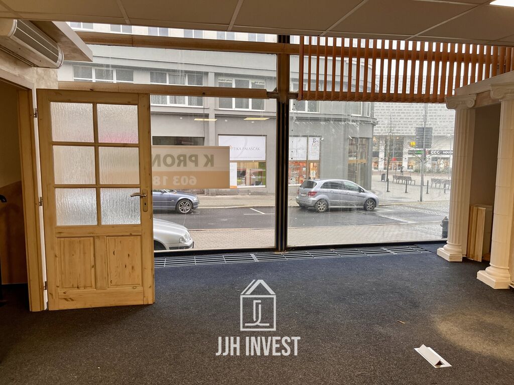 Hlavní výhodou prostoru je lokalita, dále výloha a vstup přímo z Revoluční ulice – dobrá viditelnost i dostupnost.