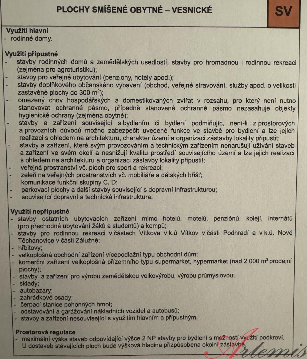 Pozemky stavební, určeny ke stavbě rodinných domů, územní plán obce schválen.