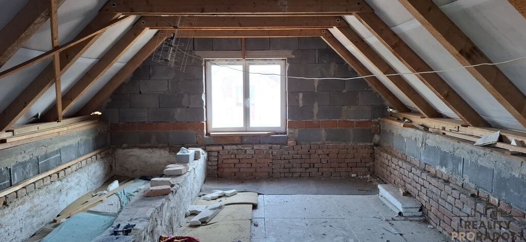 Domek disponuje sympatickým velkým podkrovním prostorem, který je připraven pro výstavbu dvou až tří pokojů. Přibližně před deseti lety byla pořízena nová střecha - vazba + krytina + střešní okna a zároveň vyzděný nový vyšší věnec pro dostatečnou výšku pokojů. Stejně tak byla pořízena výměna plastových oken a dveří.