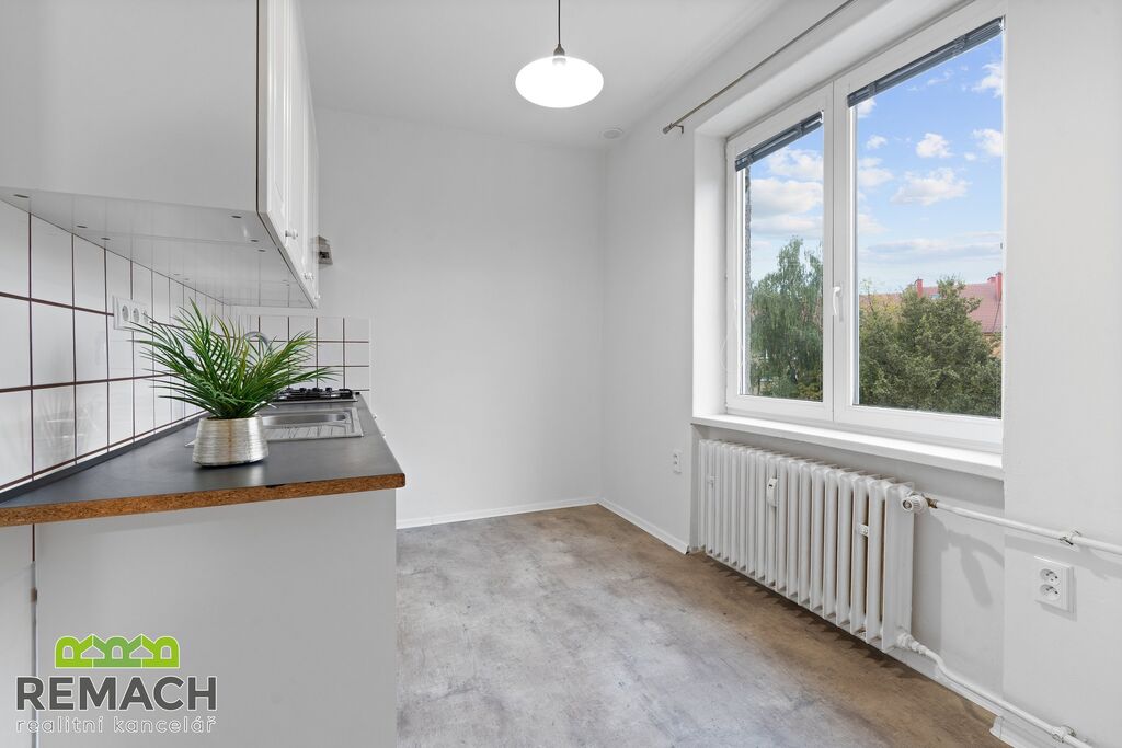 Byt o dispozici 2+1 nabízí dva neprůchozí pokoje a kuchyni s jídelnou. V zádveří je chodba se šatní skříní. Koupelna je vybavena vanou a umyvadlem. Prostorný obývací pokoj má rozlohu 20,45 m2 a nabídne vstup na balkon. Ložnice má rozlohu 13,26 m2, kuchyně s jídelnou 9,45 m2. Byt je bez vybavení, vyjma kuchyně, kde je kuchyňská linka se sporákem.