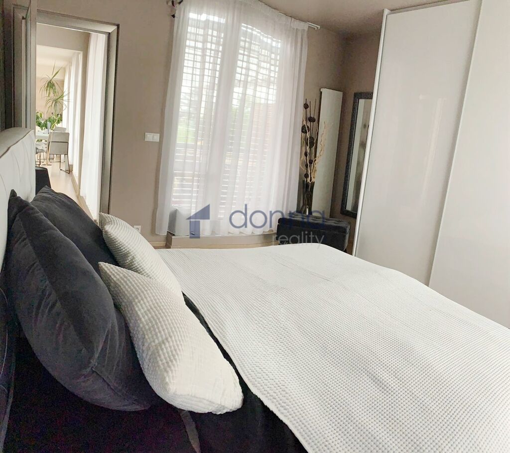 K dispozici je kuchyňská linka včetně spotřebičů, vestavěné skříně, skříň pod TV, skříně v ložnice a pokoji.