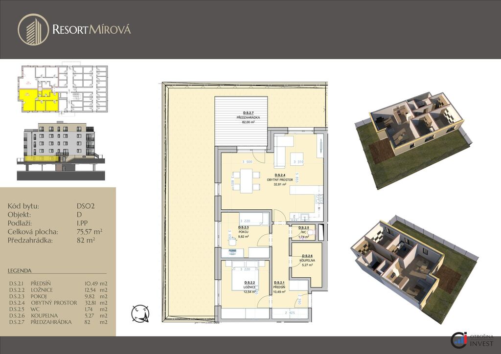 Nabízíme vám k prodeji bytové jednotky o dispozici 3+kk o velikosti 75,57 m² + předzahrádka 82 m² v novostavbě projektu Resort Mírová. Tato bytová jednotky se bude nacházet v 1. podzemním podlaží. Bude situovaná na severovýchod.