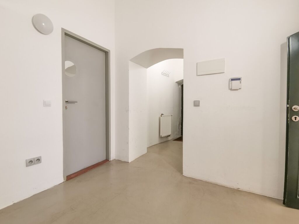 Prostory o celkové výměře 45 m2 jsou zkolaudovány jako prodejna a od předchozího nájemce jsou zařízeny vestavným nábytkem pro prodej oblečení. Skládají se z: prodejní místnosti (33m2) do ulice s velkou výlohou, skladem 10m2 (bez okna), vlastní WC s předsíňkou (2m2) . Prostory disponují druhým vchodem z pasáže domu pro zásobování, jsou vybaveny alarmem, osvětlením. Podlahové krytiny stěrkové s podlahovým topením.
