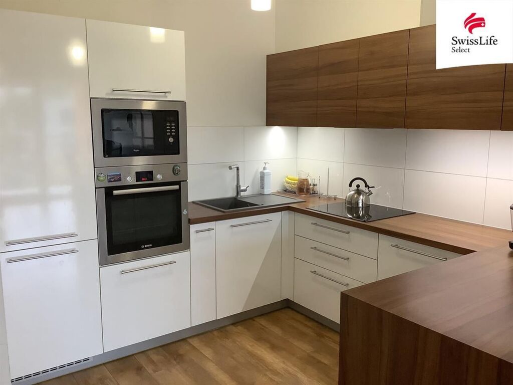 Byt zůstane vybavený kuchyňskou linkou s vestavěnými spotřebiči (lednice s mrazákem, myčka nádobí, indukční varná deska, trouba, MV trouba a digestoř), barovým stolem se židlemi, vestavěnými skříněmi v šatně, kam uložíte vše potřebné, a v koupelně bude ponechána skříňka pod umyvadlem. V oknech zůstanou rolety, popř. i závěsy.