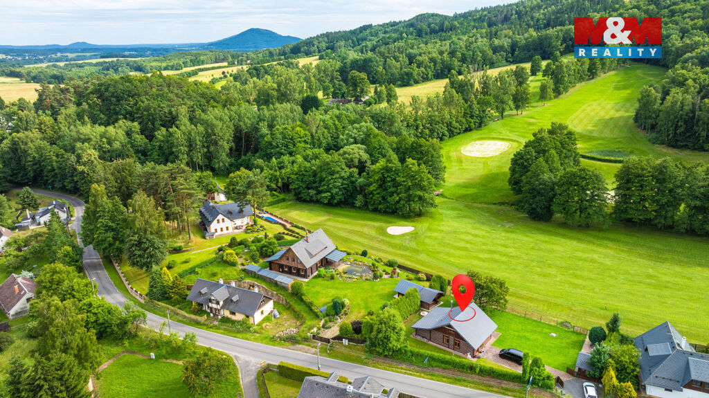 Nabízíme k prodeji krásnou dřevostavbu v klidné části obce Heřmanice v Podještědí. Tato unikátní chalupa se nachází přímo u golfového hřiště Resortu Malevil a je ideální volbou pro milovníky golfu nebo pro ty, kteří hledají bydlení obklopené zelení. Nemovitost nabízí 3 místnosti rozložené na dvou nadzemních podlažích a otevřené patro, které podtrhuje vzdušnost a moderní design interiéru. Kvalitní materiály a pečlivé zpracování zajišťují komfort a dlouhou životnost stavby. Vzhledem k bezprostřední blízkosti golfu se nabízí i možnost investice jako pronájem chalupy lukrativní klientele. Celková užitná plocha činí 95 m² a je situována na pozemku o rozloze 965 m². K prodeji i veškeré vybavení za cenu 70.000,- Kč. Výborný stav nemovitosti umožňuje okamžité nastěhování. Vychutnejte si ranní kávu na terase nebo balkoně s výhledem na precizně udržované golfové hřiště. Nechte se okouzlit tímto jedinečným místem a přijeďte se sami přesvědčit do srdce Lužických hor.