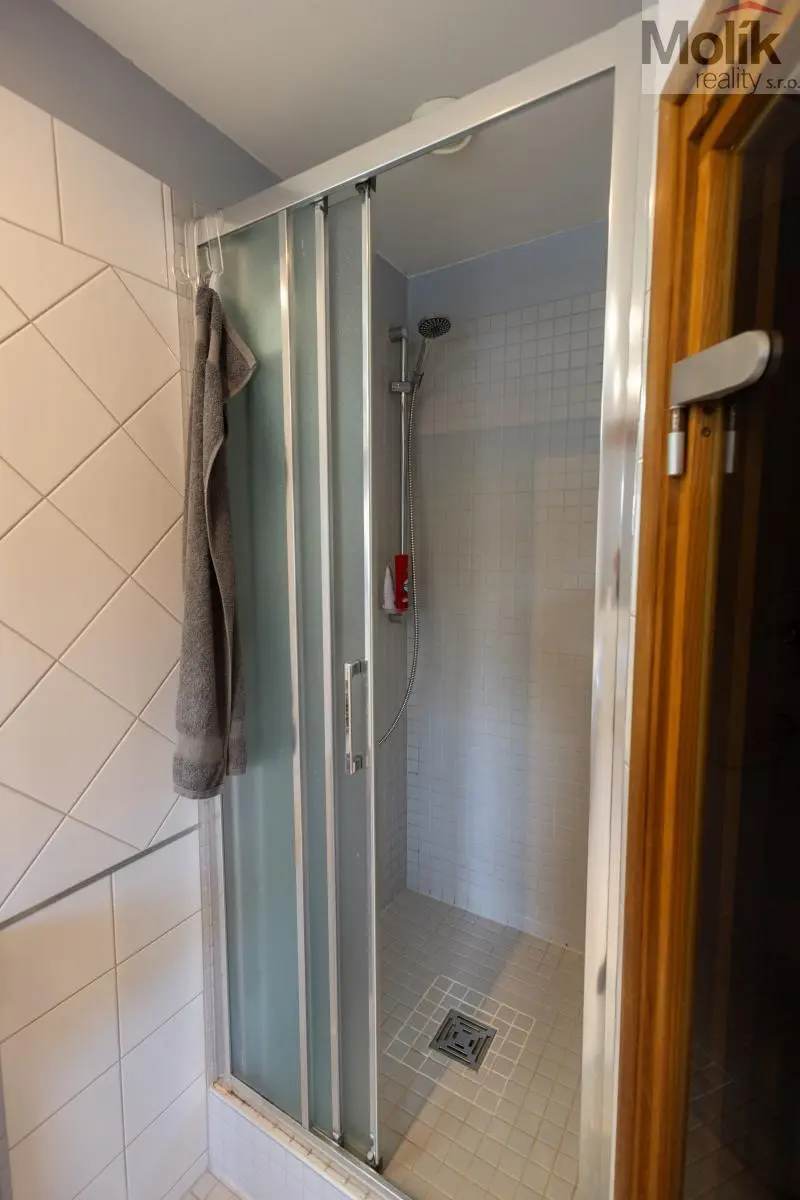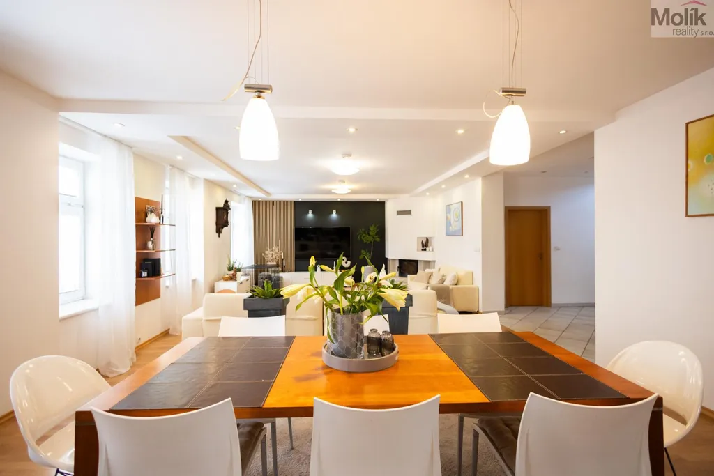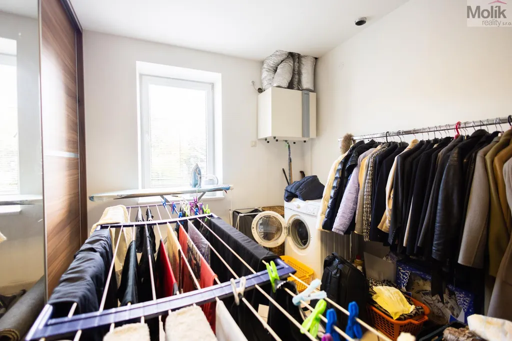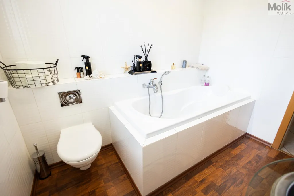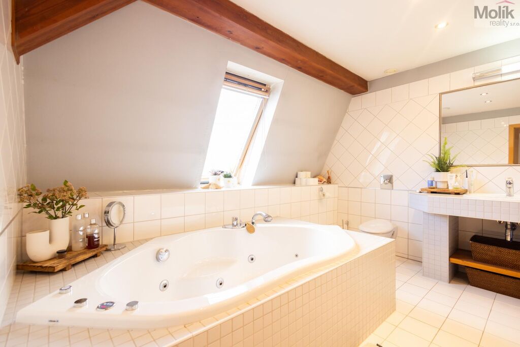Nabízí tři samostatné pokoje, kuchyň, koupelnu s vanou a vířivkou, saunu a velkou technickou místnost, ve které je pračka, sušička, žehlící prkno i věšák na prádlo. Celý byt působí velmi útulně, je světlý, moderní a prakticky řešený.