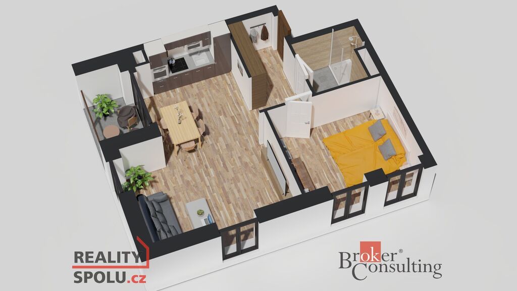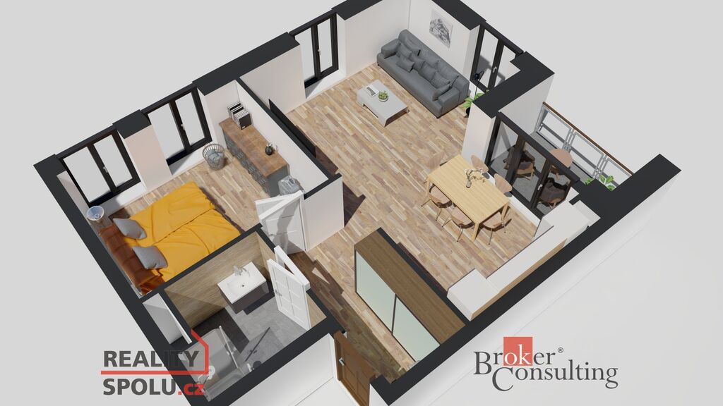 Nabízíme byt č. 5 o dispozici 2+kk a velikosti 53,73 m² ve 2. nadzemním podlaží projektu Rezidence Důl Michal.