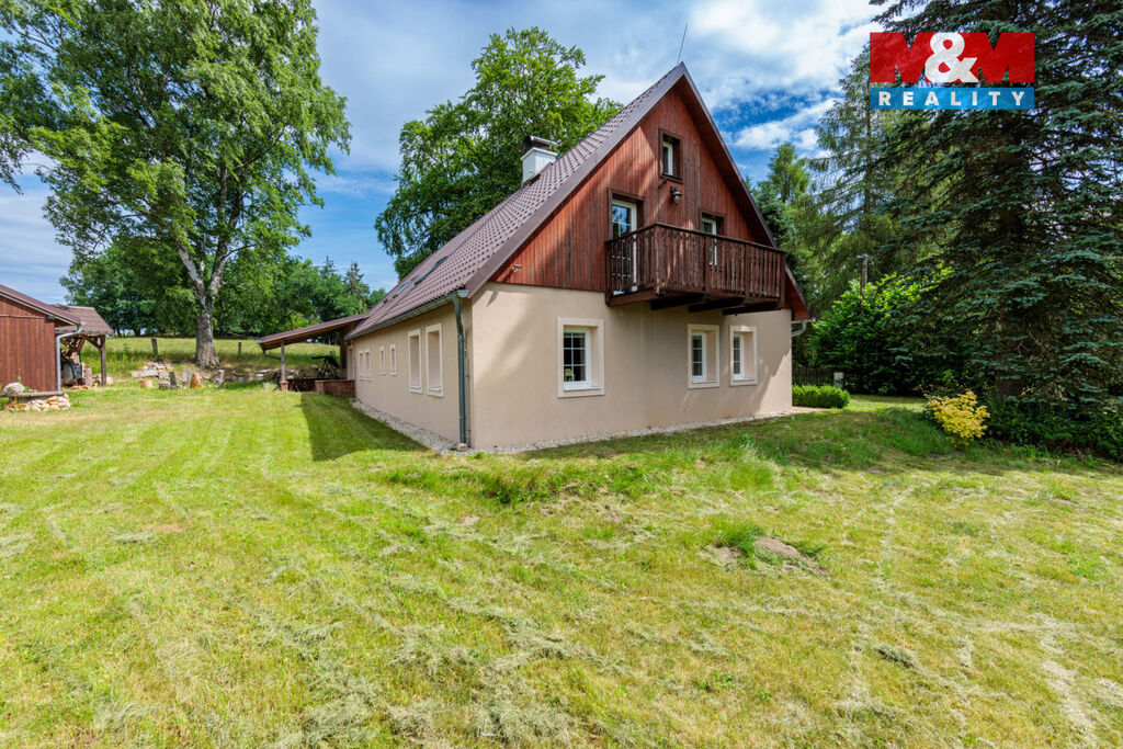 Hledáte útěk před městským životem? Nabízíme k prodeji prostorný rodinný dům v klidné části obce Jindřichovice - Heřmanov v Krušných horách. Tento samostatně stojící ekologický dům, o užitné ploše 280 m² a pozemku 1293 m², nabízí ideální bydlení pro větší rodinu nebo vícegenerační soužití. Dům je postaven z cihel Porotherm a je zateplen, což zajišťuje nízké náklady na vytápění. V přízemí se nachází podlahové vytápění, které je možné doplnit krbem nebo elektrickým kotlem. K dispozici je bojler pro ohřev vody a vrtaná studna pro odběr vody. Kanalizace je svedena do čističky odpadních vod. Pro relaxaci slouží balkon, terasa před i za domem a neoplocená zahrada s výhledem do přírody. Parkování je zajištěno pro 3 auta, včetně velké garáže. Dům je chráněn hydroizolací proti vlhkosti a radonu. Veškerou občanskou vybavenost najdete v nedalekém městě Rotava. Klidná lokalita na okraji obce nabízí famózní klid a krásné výhledy. Neváhejte a přijďte se přesvědčit osobně! Budeme se těšit!