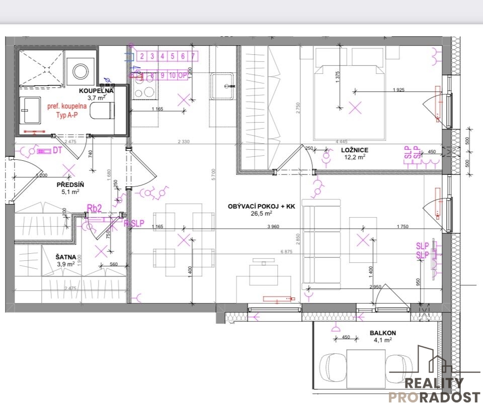 K dlouhodobému podnájmu Vám nový byt 2kk s výměrou 60m² a samostatnou sklepní kójí a parkovacím stáním.