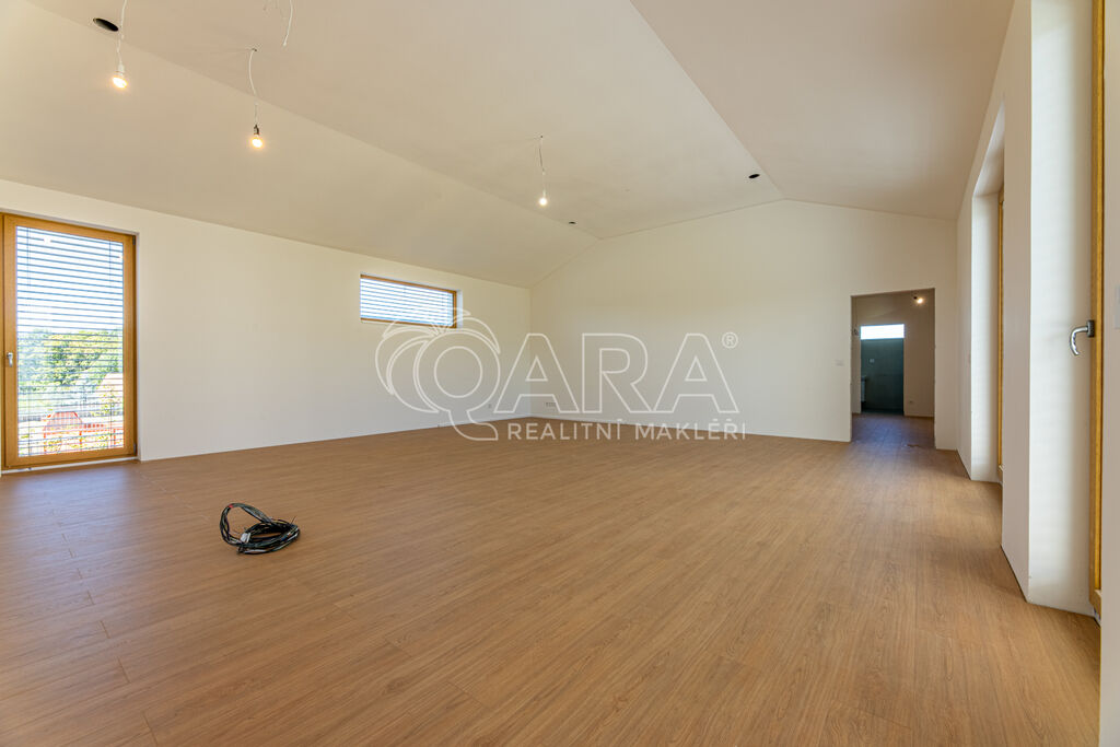 (Dům je dokončený včetně finálních podlah a výplně otvorů a bez nábytku. Podrobnější informace u makléře.)