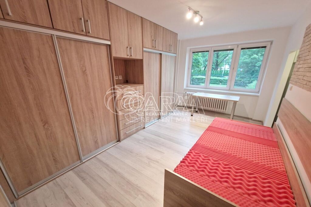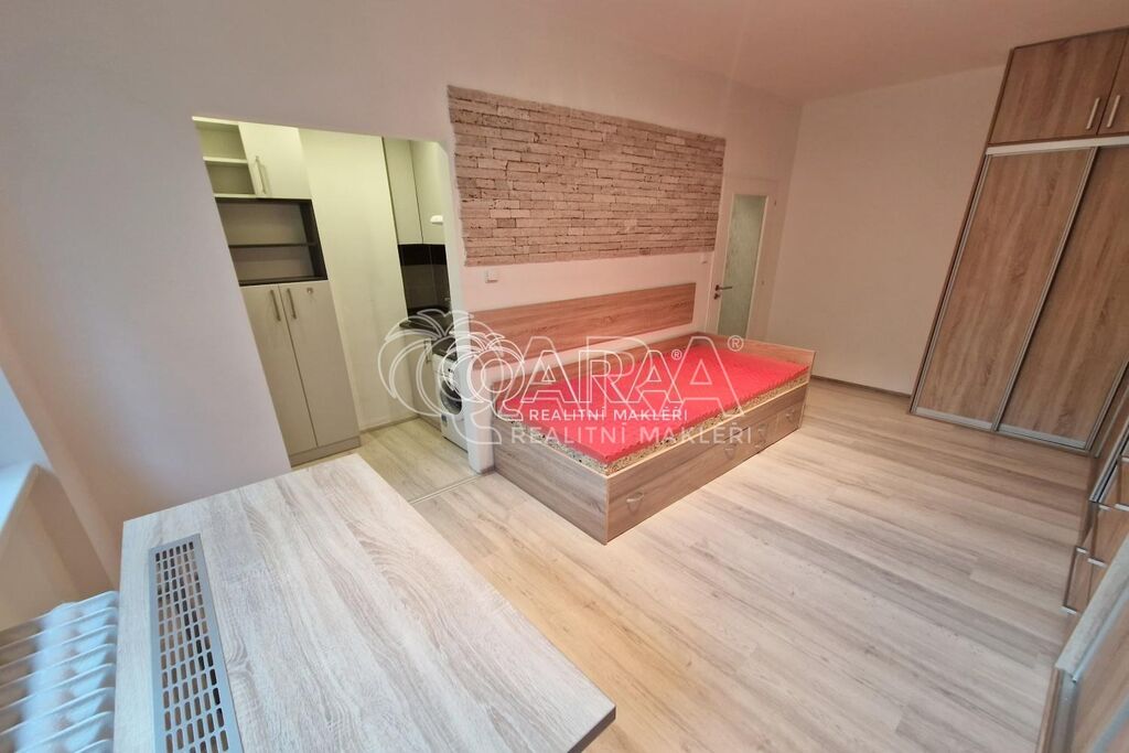 Nabízíme pronájem zrekonstruovaného, zařízeného bytu 1+kk a užitné ploše 21 m2, Ostrava - Poruba, ul. Žilinská. Byt je umístěn ve zvýšeném přízemí cihlového domu. Zařízení bytu tvoří vestavěné skříně, psací stůl, postel, lednice, plotýnkový dvojvařič, pračka, úložné prostory v předsíni, plovoucí podlaha v pokoji a kuchyňském koutě, dlažba předsíň a koupelna, plastové okno se žaluziemi. Bytová jednotka se skládá z pokoje, kuchyňského koutu, předsíně, koupelny se sprchovým koutem a s WC. K bytu patří sklep (3 m2). Jižně orientovaný výhled je do zeleně. Měsíční nájemné činí 8.500,-Kč + služby spojené s užíváním bytu ve výši 1.400,-Kč (teplo, TUV, SV, pojištění, elektřina společných prostor, úklid). Elektřina přepisem na nájemce. Vratná kauce činí 15.000,-Kč. Provize RK ve výši 11.000,-Kč. Volné od 3.11.2025. Domluvte si prohlídku.