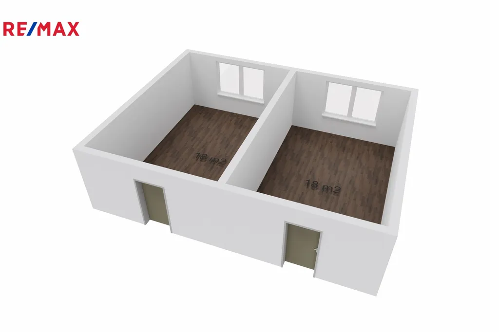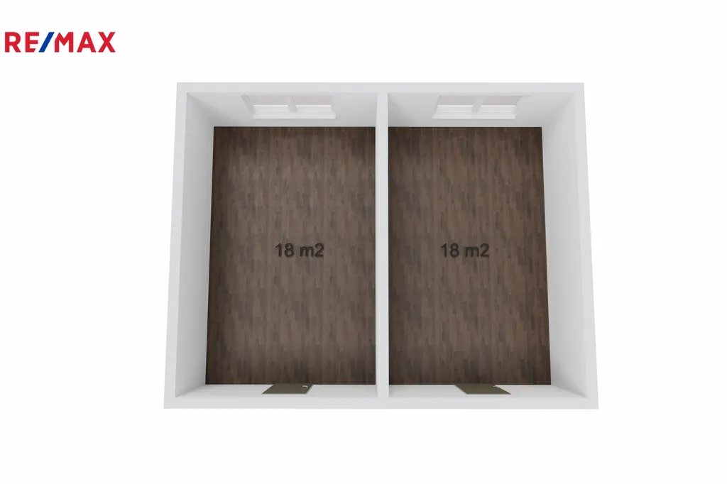 Nabízené kanceláře jsou rozděleny do dvou místností po 18m2.
