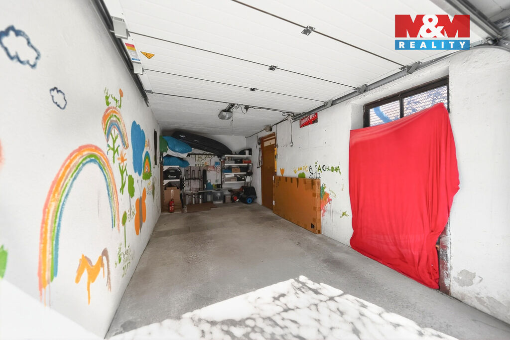 K bytu patří sklepní prostory o velikosti 26 m² v částečně podzemním podlaží a dále garáž se zahradní místností o rozloze 27 m². Součástí prodeje je také výlučně užívaná zahrada o ploše 124 m², která nabízí dostatek prostoru pro odpočinek, posezení pod pergolou i rodinné zázemí v soukromí.