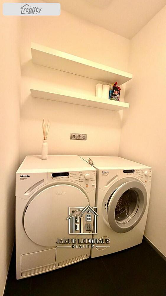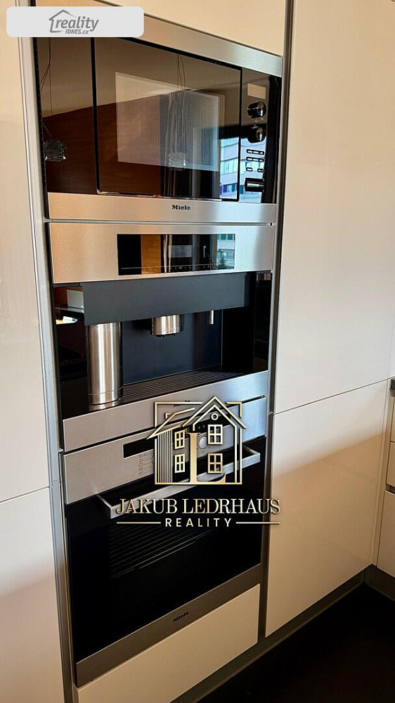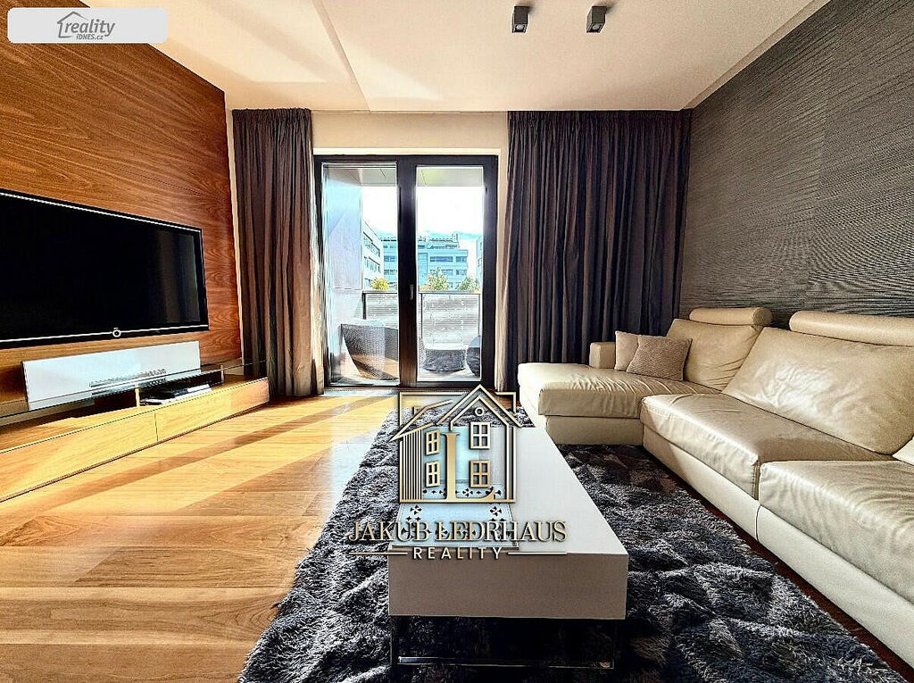 Dominantou bytu je prosvětlený obývací pokoj s plně vybavenou kuchyní se spotřebiči Miele, jídelním koutem a přímým vstupem na balkon o velikosti 3,5 m², orientovaný do klidného vnitrobloku se zelení.