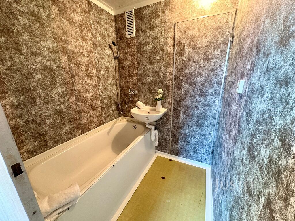 Prostorná předsíň s úložným prostorem. Obývací pokoj je dostatečně velký a má k dispozici balkon, ideální pro ranní kávu nebo večerní posezení. Kuchyně s linkou, elektrickým sporákem s troubou a velkou jídelnou, dále dvě samostatné ložnice, šatna nebo komora pro uložení věcí. V koupelně je vana a umyvadlo. WC je řešeno samostatně. Na chodbě je další oddělená komora pro uložení věcí.
