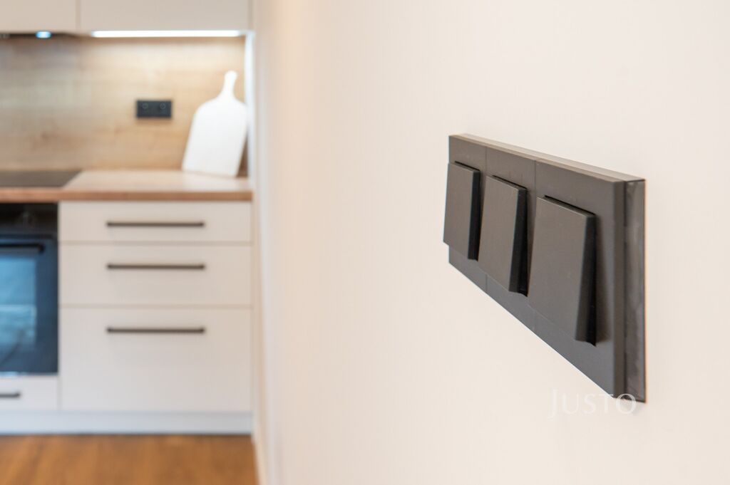 ● kuchyňský kout s moderní kuchyňskou linkou plně vybavenou vestavěnými spotřebiči (lednice NO FROST, mrazák, myčka, el. trouba, sklokeramická varná deska, mikrovlnná trouba),