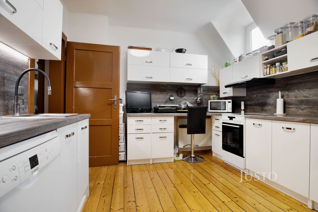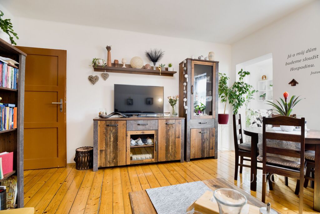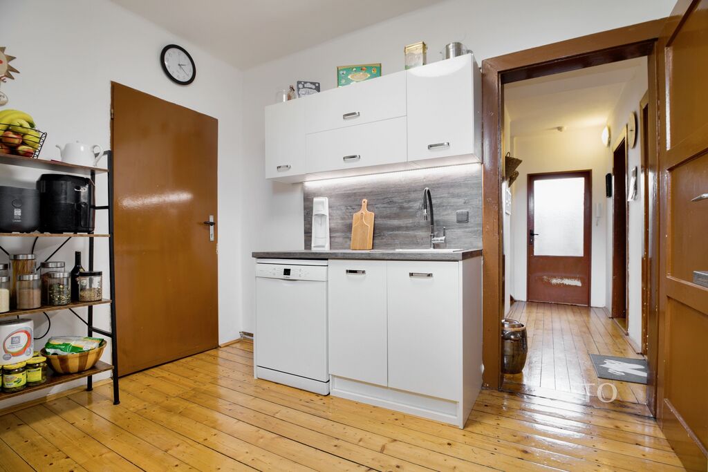 Se skládá z prostorného obývacího pokoje, ložnice, pokoje, kuchyně, dále pak koupelnou se sprchovým koutem a toaletou.