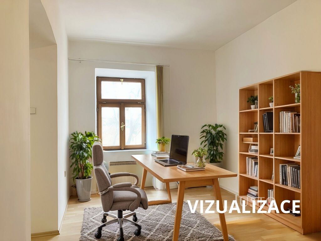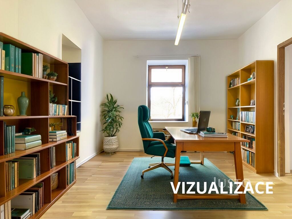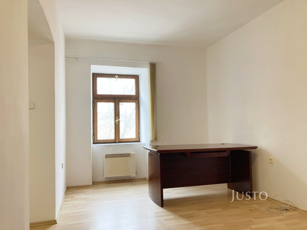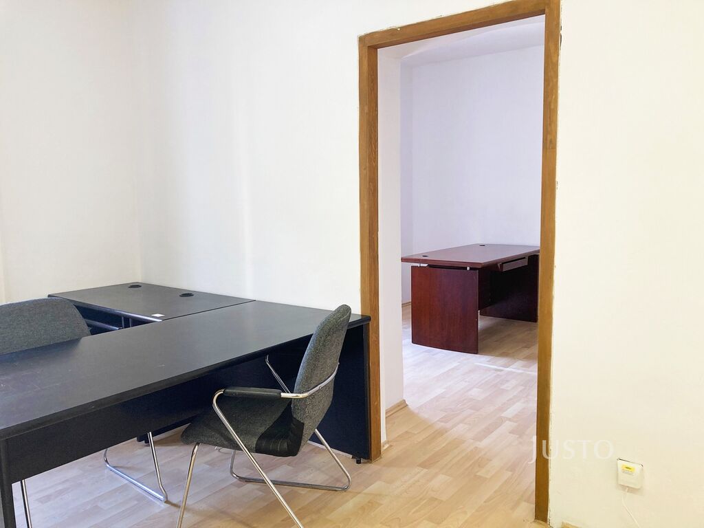 - dvě průchozí místnosti: 20 m² a 19 m², zkolaudováno jako kanceláře