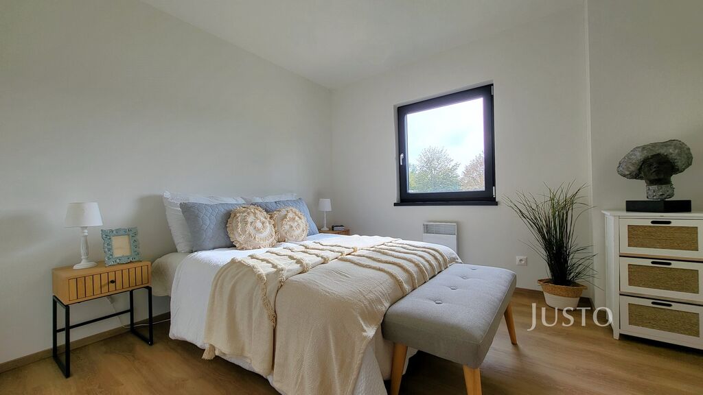 V přízemí najdete zádveří, obývací pokoj s kuchyní dohromady, spíž, ložnici a koupelnu se sprchovým koutem, ve které je umístěna technologie domu. Pokud podnikáte, můžete přízemní pokoj využít pro tyto účely. Návštěvy Vám tak nebudou chodit přes dům.