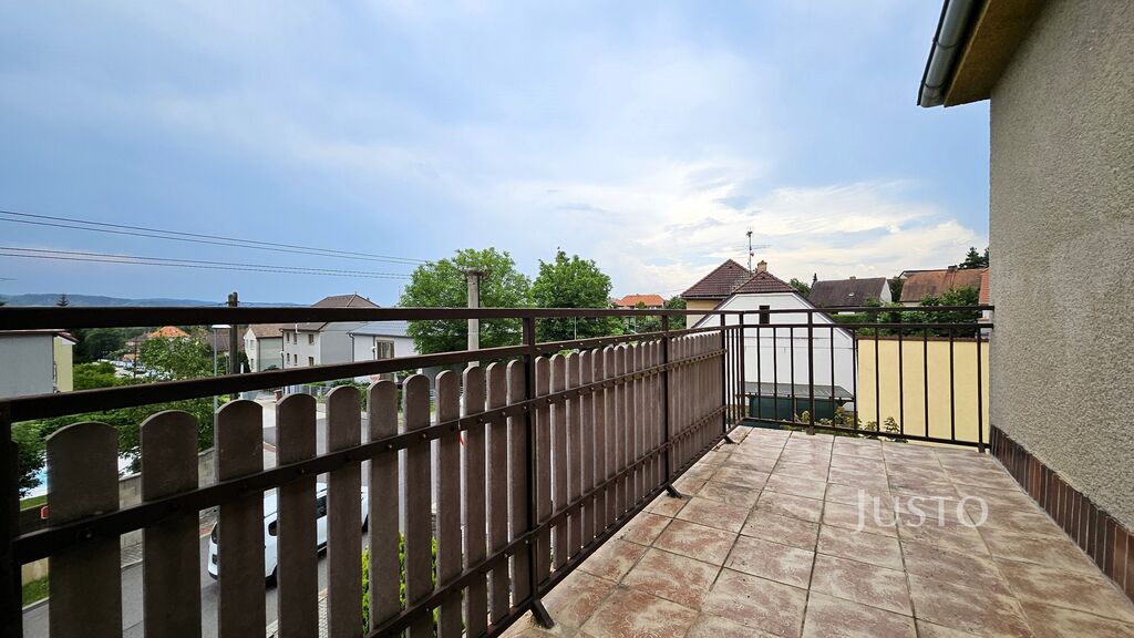 Vstup do domu je společný s bytovou jednotkou v přízemí, kde je společná veranda. Byt ve druhém nadzemním podlaží má v současné době dispozici opravdu velkorysého 2+1 s pracovnou a terasou o celkové užitné ploše 90 m². Při vstupu do bytu je chodba, ze které je po levé straně přístupná pracovna (sklad), ze které je vstup na terasu s pěkným výhledem na Písek. Velká ložnice je se samostatným vstupem. Kuchyně s jídelnou je volně otevřena do velkého obývacího pokoje s krbovými kamny s výměníkem. Koupelna je se sprchovým koutem a s toaletou, která je oddělena dveřmi. Na chodbě je pak ještě spíž.