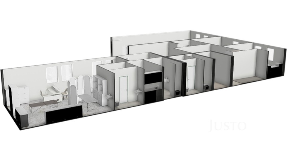 - Lze pronajmout celé patro, nebo i každou ordinaci jednotlivě.