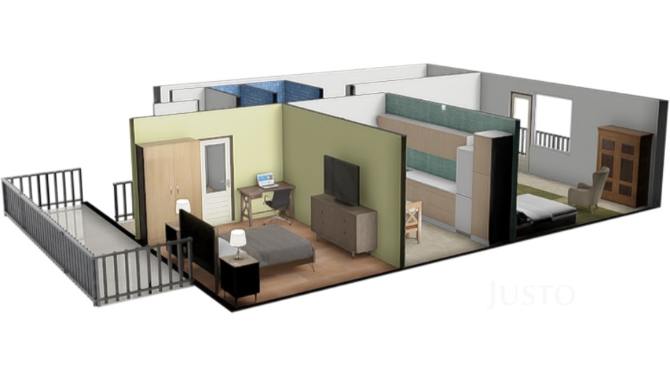 Dům je rozdělen na dvě bytové jednotky, v přízemí je byt s dispozicí 3+1 a v patře je byt o dispozici 2+1 s příslušenstvím. Vstup do domu je přes společné zádveří, přízemní byt nabízí dvě samostatné místnosti, kuchyni s praktickou spíží, jídelní kout a obývací pokoj s terasou. Koupelna je s vanou, toaleta je zvlášť. V podkroví je obytná kuchyně s místem pro jídelní stůl, prostorný obývací pokoj s terasou a samostatná ložnice. Koupelna je zde menší se sprchovou vaničkou a toaleta je zvlášť.