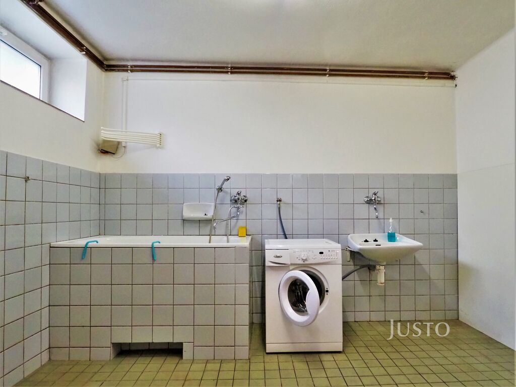 V suterénu domu je garáž pro parkování dvou vozů za sebou. Prádelna je vybavená praktickou vanou pro ruční praní, pračkou atd. Z prádelny je vstup do sklepa, který sloužil pro uchování zeleniny.