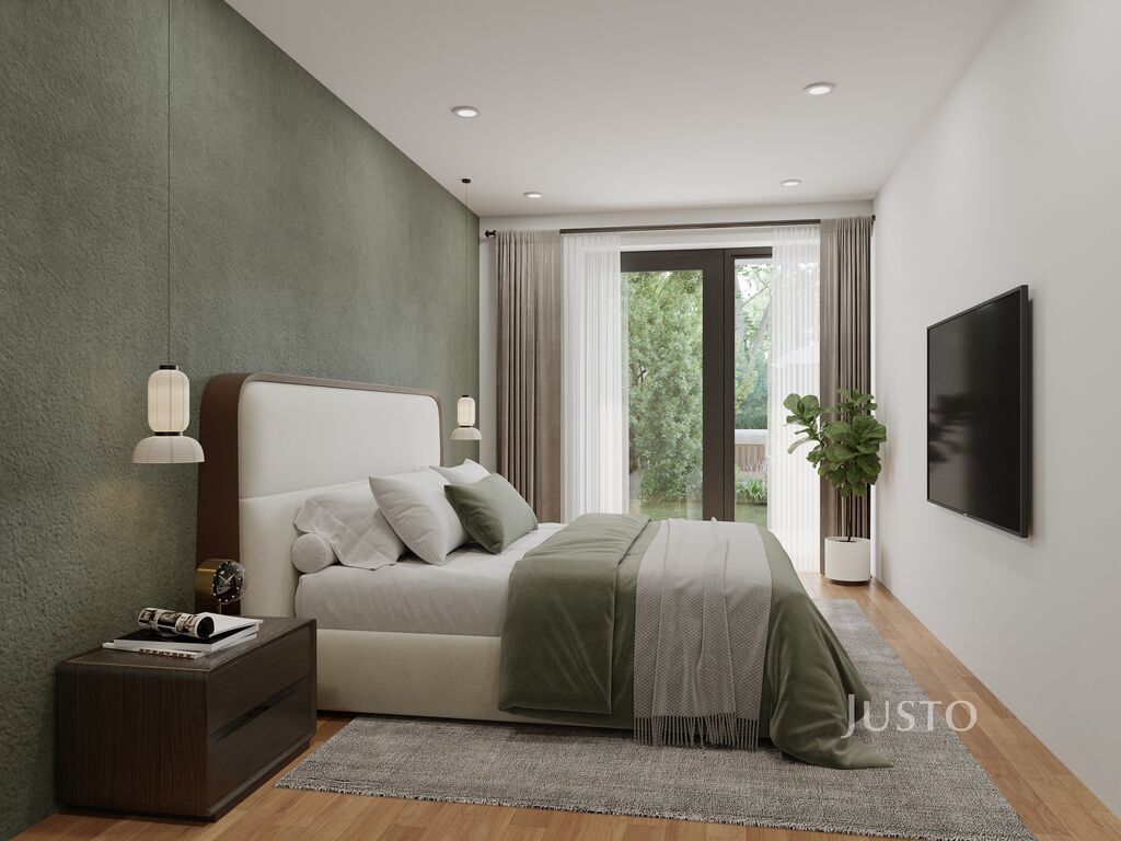 1. podzemní podlaží zahrnuje dvě ložnice s přímým vstupem na terasu a dále na zahradu, druhou koupelnu a místnost, která může být využita jako sklad, posilovna nebo v případě potřeby jako prádelna