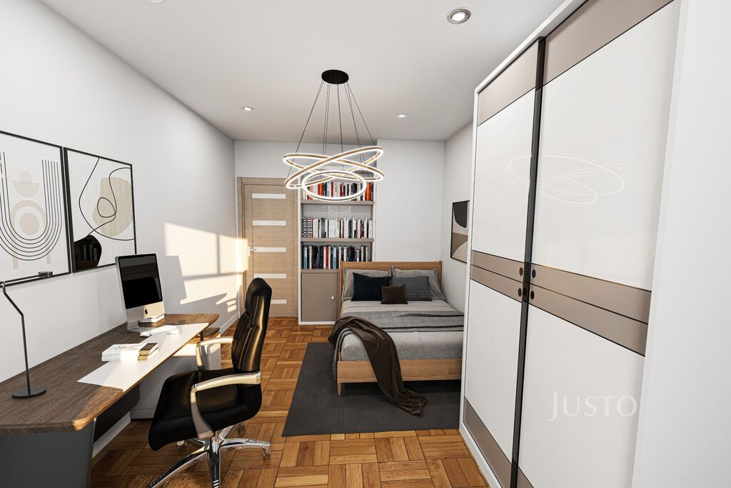 2. patro: obývací pokoj, dva pokoje, koupelna se sprchovým koutem, balkon do ulice, 59,1 m²