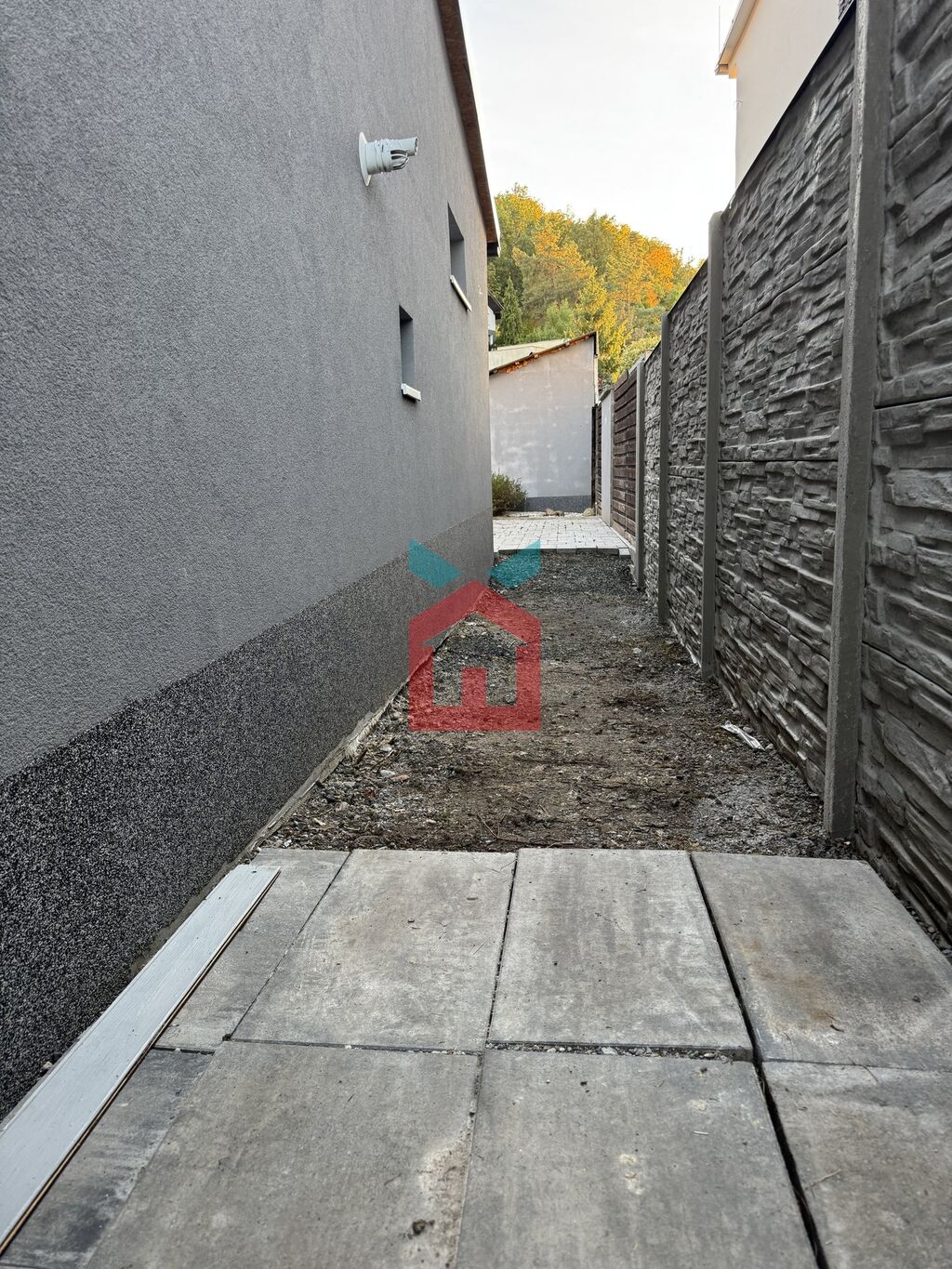 Dále k domu patří venkovní úpravy, oplocení, vrata, zpevnění plochy.