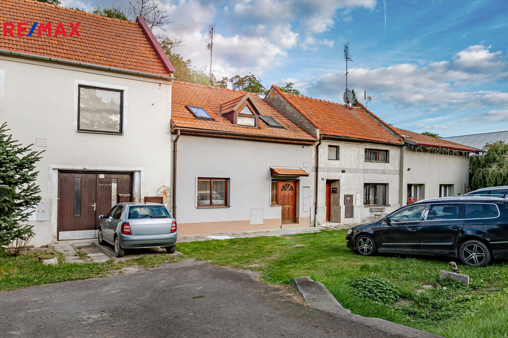 Bezproblémové parkování před domem, na jednom zpevněném parkovacím místě a další třeba dvě auta na zatravněné ploše.