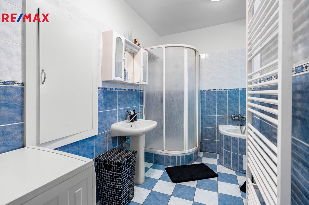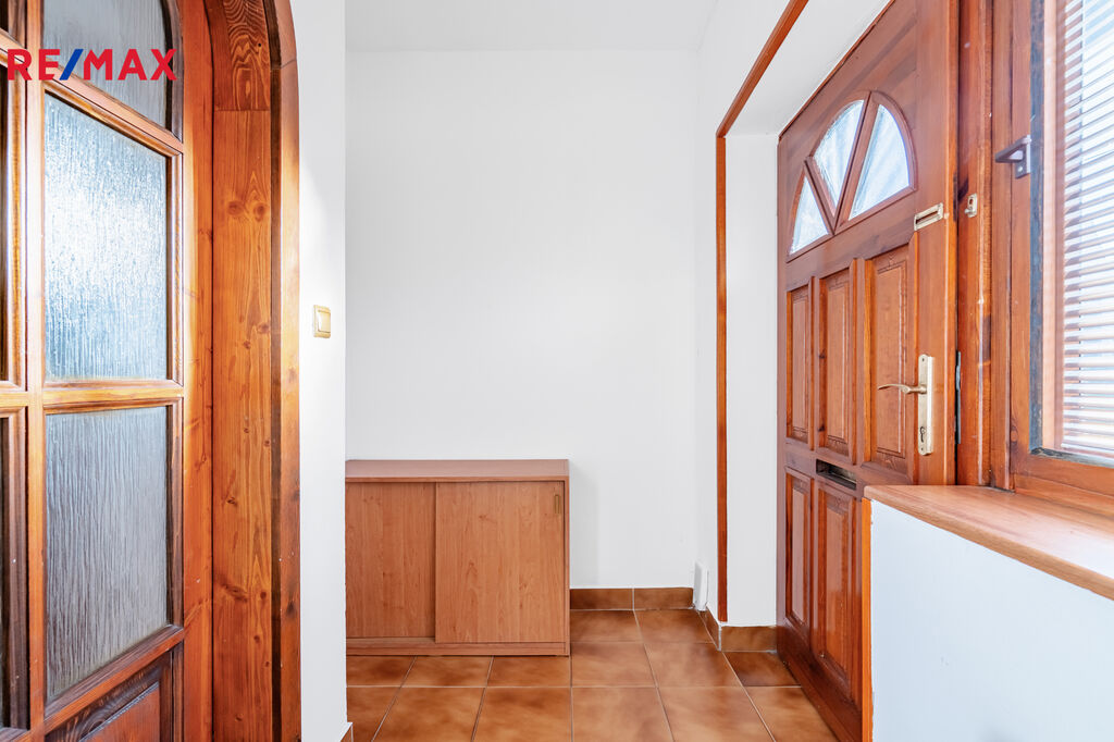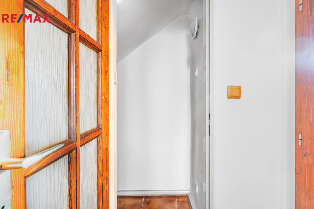 Přízemí - vstup do domu z přilehlé ulice přes zádveří a vstupní chodbu, ze které se vstupuje do prostorné kuchyně s jídelnou a dále je s chodby vstup do samostatné koupelny s rohovou vanou a sprchovým koutem a samostatné WC.