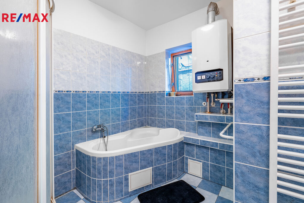 Vytápění ústřední plynové, zajištěno plynovým kotlem umístěným v koupelně.