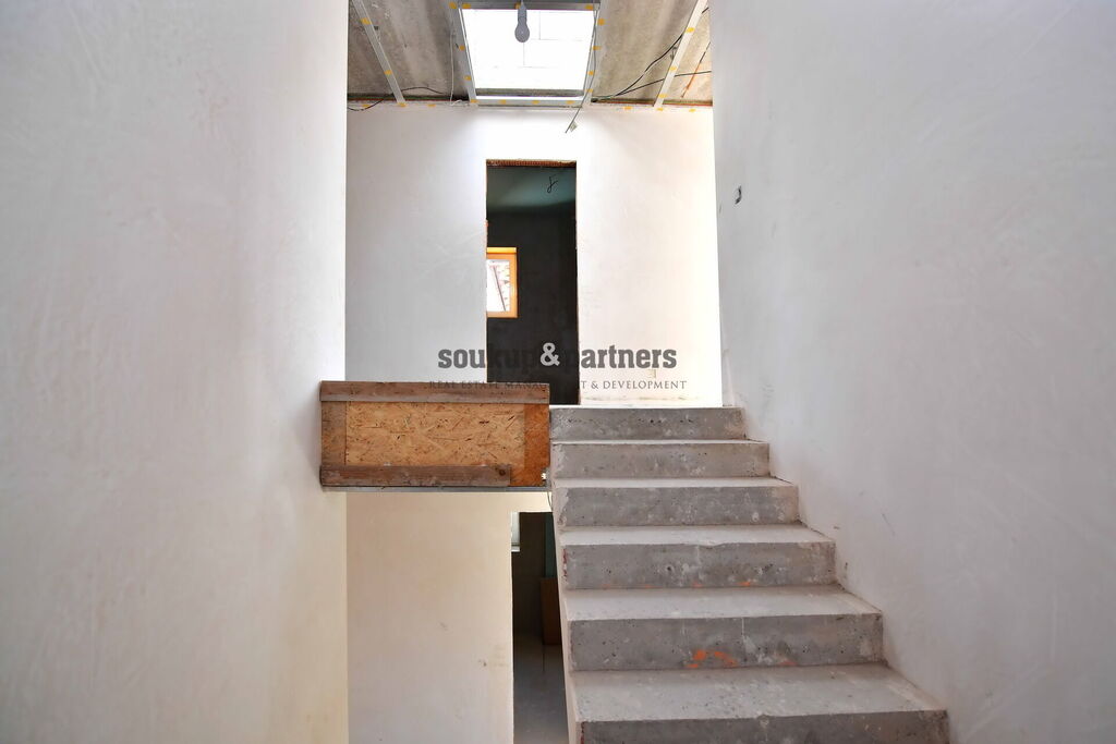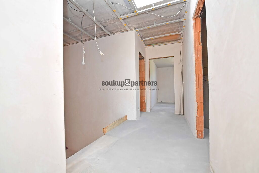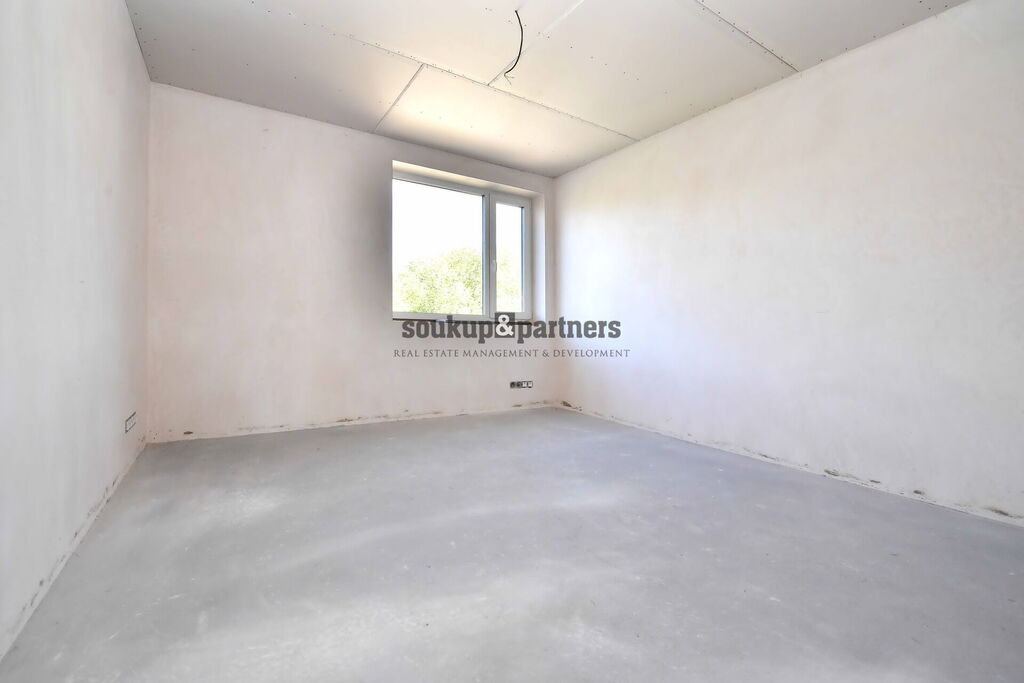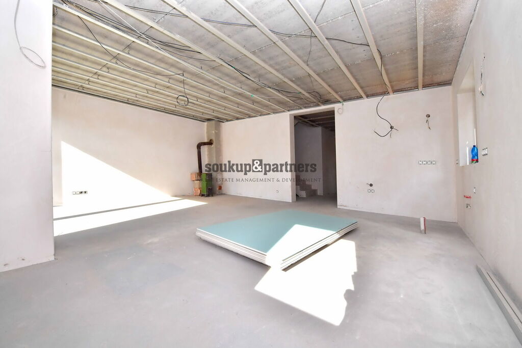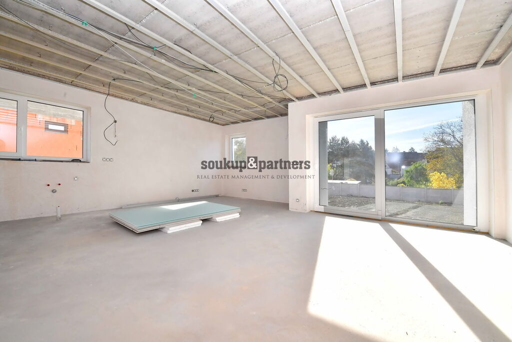 Dům je ve stavu Shell & Core tzn. před položením povrchových materiálů. Díky velkoplošným oknům a orientaci na JIH je dům nadstandardně světlý. Vytápění je po celém domě podlahové teplovodní (již hotovo). IS - elektro, obecní vodovod a odpad sveden do jímky. Je vybudovaná příprava na připojení na kanalizaci a je podaná žádost o připojení.