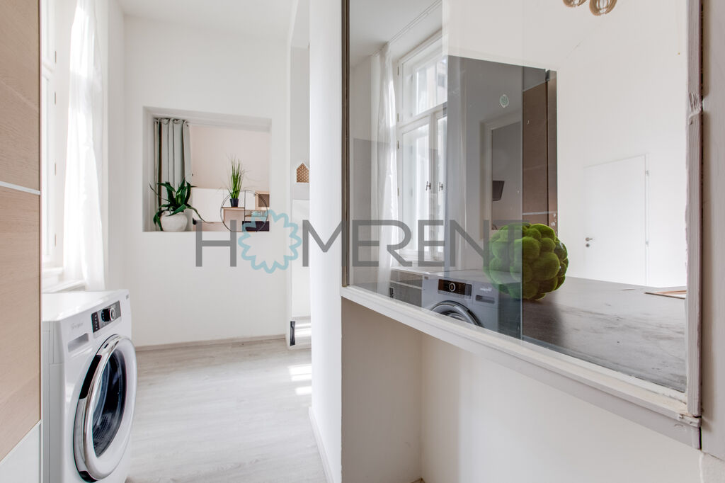 Byt směřuje do klidného vnitrobloku, což zaručuje absolutní soukromí a klid i v centru města. Spojuje v sobě šarm starého činžovního domu s moderním designem a funkčností – ideální pro ty, kteří ocení styl, originalitu a výbornou dostupnost.