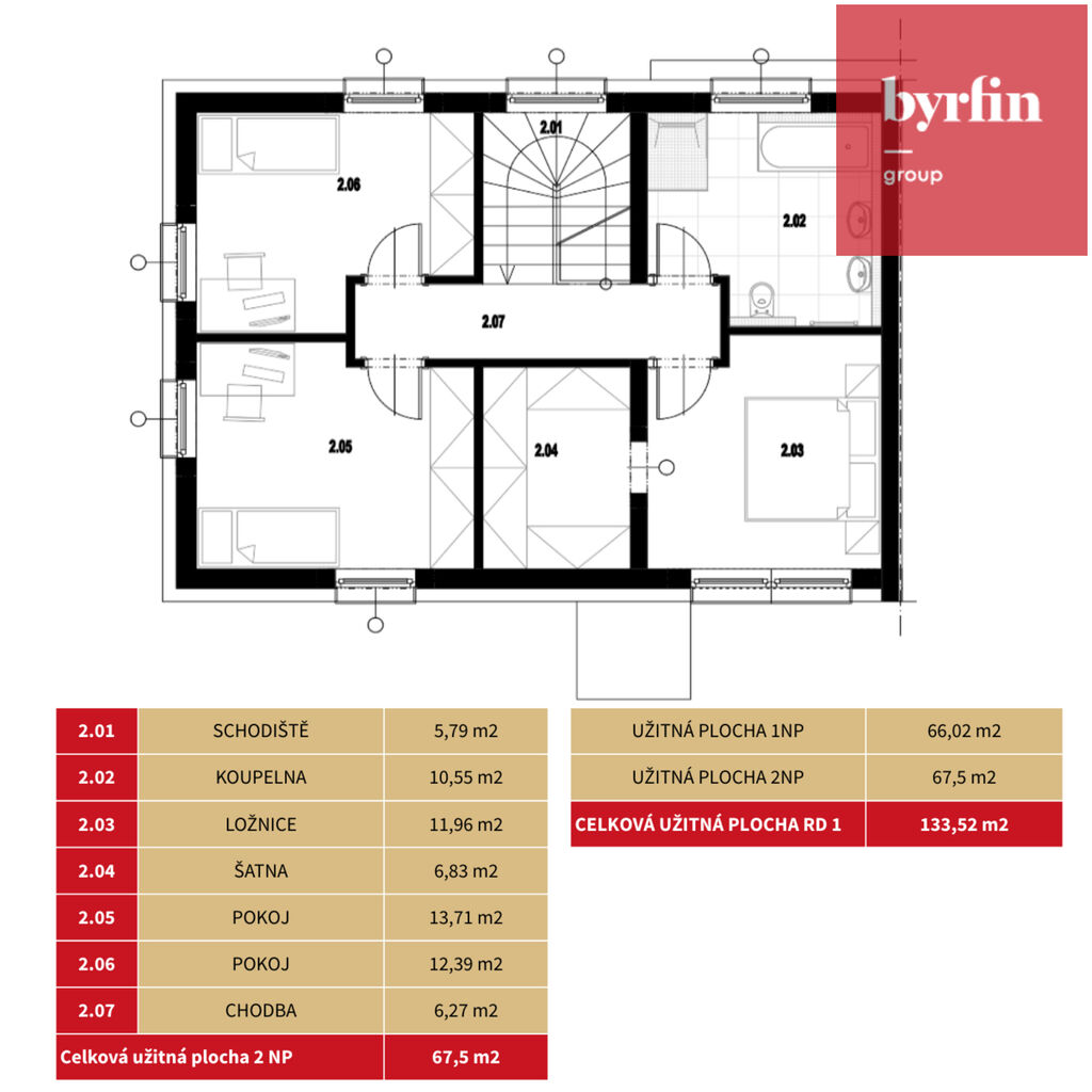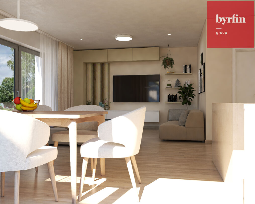 Dispozice 4+KK poskytuje komfortní prostor pro celou rodinu.