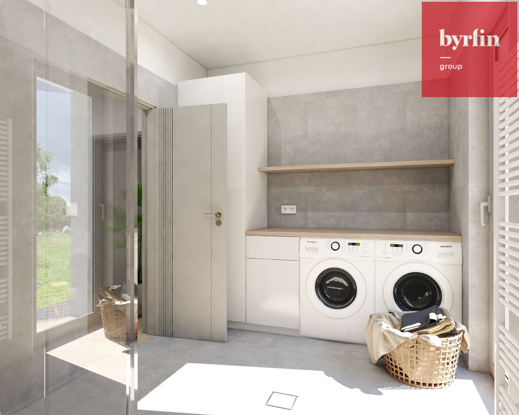Vysoký standard provedení zahrnuje kvalitní plastová okna s trojsklem a venkovní elektrické žaluzie v každé místnosti, již v základním standardu – tedy v tzv. kolaudačním minimu.