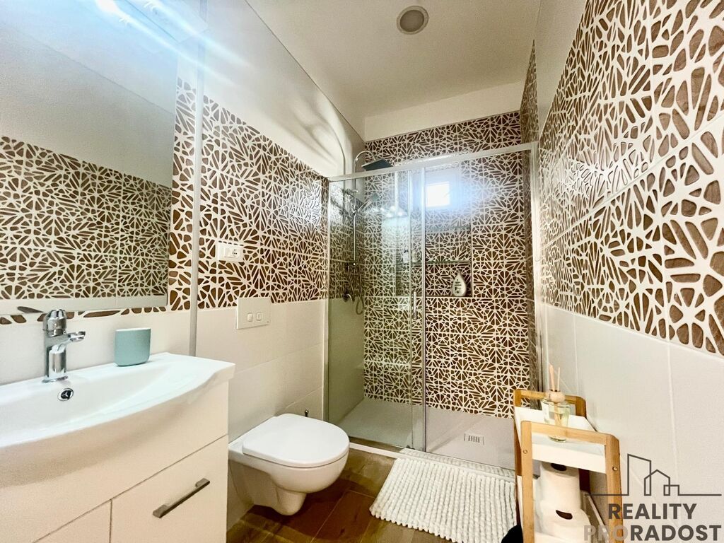 Byt se nachází v druhém patře s výtahem, necelých 100 metrů od moře, a prošel kompletní rekonstrukcí, která mu dodala eleganci, svěžest a moderní charakter. Jako bonus se tento byt prodává již kompletně zařízený!