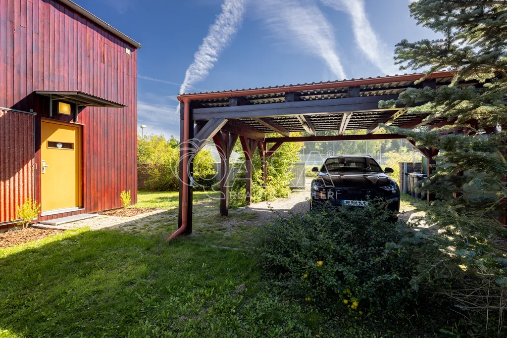 Těšit se můžete na zastřešený (Alukov) venkovní bazén Desjoyaux s protiproudem (9 x 4 m), na venkovní sprchu, kryté osvětlené parkovací stání pro 2 auta, terasu z teakového dřeva s ratanovým nábytkem, na automatickou vjezdovou bránu, udržovanou zahradu se závlahou Hunter nebo praktický zahradní domek a dětský kout.